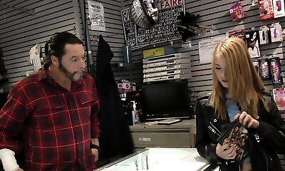 Phat bottomed whore Assh Lee improve her skills in the glory hole room