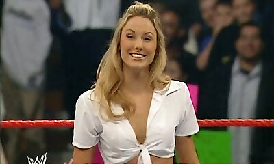 Wrestling babe Stacy Keibler shows off her panties spread eagle