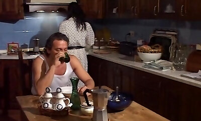 Splendid brunette babe groped and seduced for fucky-fucky in the kitchen