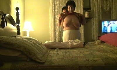 Senile grannie with big boobs Norma B gets intimate with young dude