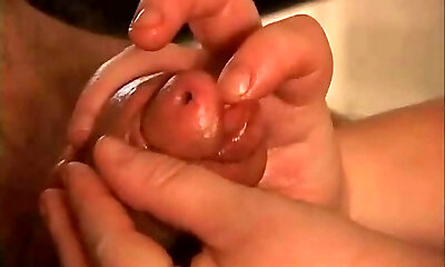 HOT Wax Handjob - Fat Pierced Manstick - Prince Albert - Cum out of Piercing!