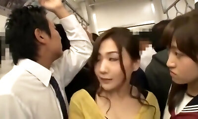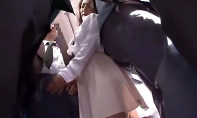 Japanese slut gets packed in a crowded public bus