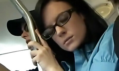 Blonde pawed on-bus by asian