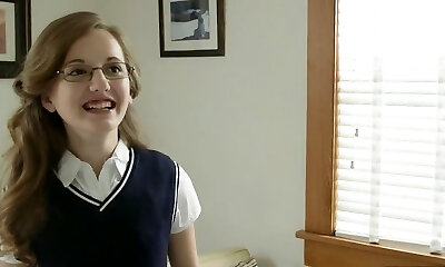 Pretty 18yearold redheaded sweetie, Ashlyn Rae, wearing a conservative schoolgirls uniform, soon has